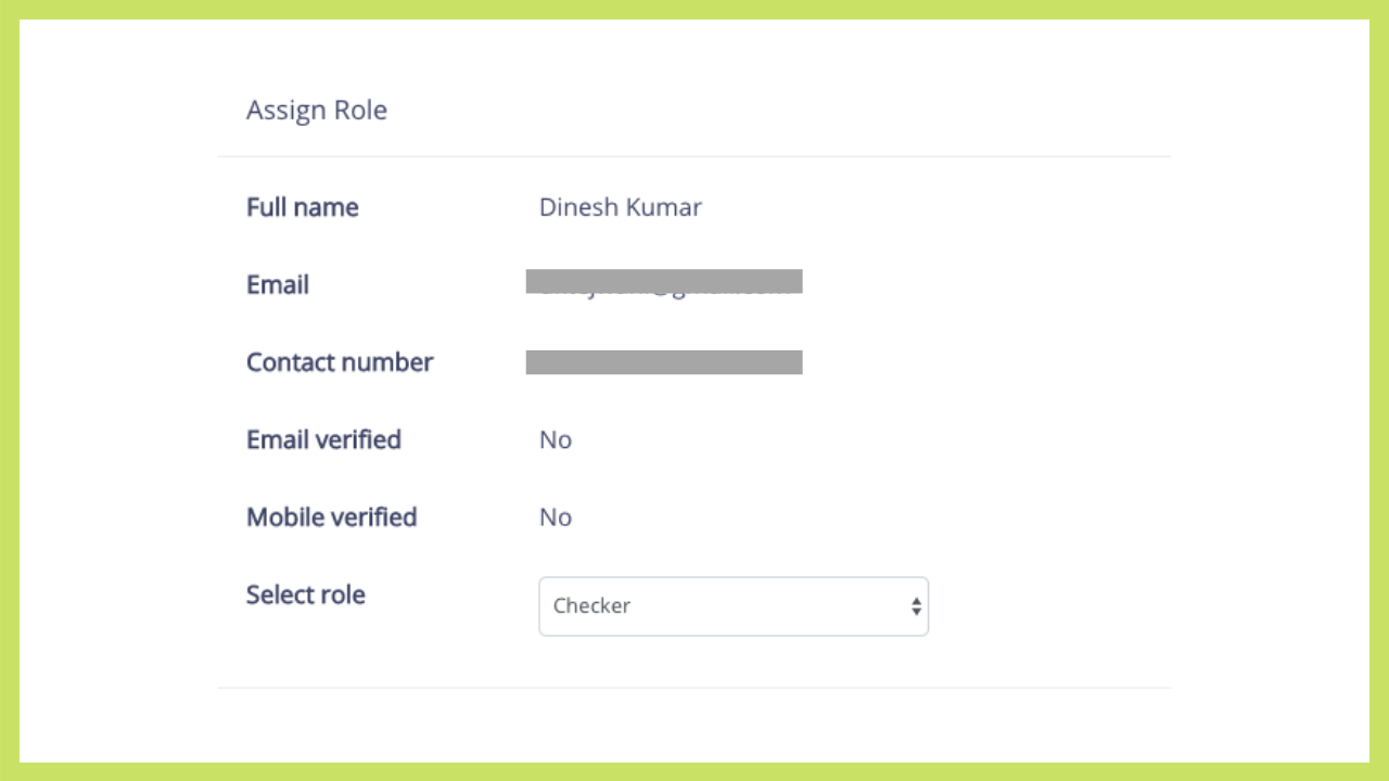 - A user can be assigned role as maker, checker or administrator. However while inviting a user if "Viewer/Auditor" is selected then the only options available are viewer, auditor .