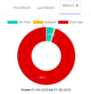 The Pie chart can be seen for This Month, Last Month and any Compliance Period. Based on this selection only compliances with due date falling within the selected period are considered.